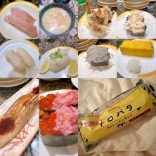 夜は旦那が何食べに行きたい?って言ってくれて寿司🍣!って言ったらがってんに連れてってくれた😍 とろびんちょう、がってんあら汁、クランチロール、海鮮サラダ、つぶ貝、えんがわ炙り、ロイヤルスコティッシュサーモン、生しらす軍艦、厚焼き卵、穴子一本勝負、とろいくら軍艦…と色々食べてお腹いっぱい😉 お寿司はシェアとかもしつつ食べたから全部で大体7皿くらい食べたかな? 帰りにファミマで今ラムレーズンフェアやってるから、トロバタラムレーズンサンド買って家で旦那と韓ドラ見ながら食べたよ🍇