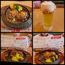 じい様(我が父)の新盆で実家に帰省、お寺行ってゲーセン連れてってからのハンバーグランチ。ハハはライスやめて生ビ×2とグラスワインまで飲んぢゃったよ🍷 久しぶりにさわやかも食べたいなぁ~