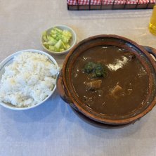 ビーフシチュー (白飯&漬物おかわりOK) グツグツ鍋に ごろごろたっぷりビーフ入り シチューは よくある煮詰めました的なイヤな濃さ(≒しょっぱさ)はなくて まぁ飲みやすい、といえばいいのかな でも料理上手な方ならたぶん作れそうだなと思ったりして…( ̄▽ ̄;) 残念なのはセットの白菜の漬物が塩辛すぎること! いくらシチューの箸休めにしたってヒドい 時期的に暑かったり寒かったりしてたから 漬ける塩梅間違えたのかなぁ〜(ーー;)