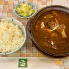 シチューじゃなくて、煮込みハンバーグ。まだグツグツいってます。ハフハフ。これなら1050円とリーズナブルw旨旨!