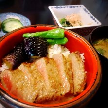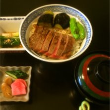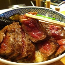 山形牛ステーキ丼1575円。先着4名限定で半額!山形の人は毎日でもこんなに美味しい牛肉が食べられるだぞ、すごいべ?(^_−)−☆