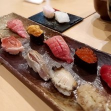 今日は陶器市に柏まで。 ランチは柏公設市場内の「大和寿司🍣」さん。市場の中だけにあって、美味しい! 好きなネタを選べるのも魅力的なランチセット! 私は、大トロ、エンガワ、ノドグロ、雲丹、つぶ貝、サザエ、アワビ、車海老の8貫にしました。 陶器市で買物。 今日は控えめに😅新入りをお迎え。 寄り道しつつ、夕飯は…とお目当て数軒行きましたが、コロナで閉店時間が早い所ばかり😭 開いてた「みやこ屋」さんでお好み焼きや焼肉など鉄板焼を。 思いがけず、お酒が飲めたのが何より嬉しい🤣 投稿先行で…🙇
