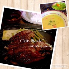 今日は美容院へ行ったあと、旦那とランチデート♪(´ε` ) いつも急な呼び出しにも応じてくれるのでありがたいです(笑) そして、なかなか日頃話せない、子供のことや、自分のことや、私ののことや… ま、盛大に自分のことを喋るわけですが…(≧∇≦) お肉が食べたいと言ってたのを覚えてくれてて、今日はやわらかステーキセット( ᵕ́ૢ‧̮ᵕ̀ૢ)‧̊·* 本当に冷めても柔らかいお肉に感動! いつものことやけど、何回「美味しい!」を連呼したでしょう(笑) 今日もしあわせですo(^_-)O