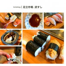 連投失礼します... 足立市場場内の寿司屋さんお任せコース: 中トロ、大トロ、シマアジ、赤貝、牡丹エビ、うに、鉄火巻き、アナゴ。 第1貫目直接に中トロ: 醤油の表面が油が出てきました。 牡丹エビすごい粘りある、めっちゃ甘い! 鉄火巻き一般的には赤身を使って、ここは中トロと大トロを使った。 穴子の煮汁うまい。 全部で3000円、高級料理の感じ。職人の青春をかけて修業した腕だから納得できます、並んでないすぐ入れます、楽くらく。