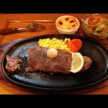 もろみ味噌を使ったソースが気になり訪問しました。デミグラスソースともろみ味噌を混ぜたソースとのことですが、味噌の酸味は僅かに感じる程度、普通にデミグラスソースで良かったかも。 モロミハンバーグステーキ(300g) 1,030円 Aセット(サラダ、ライス、ピーチシャーベット) 400円