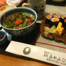 皆様♡ 昨日はおめでとうを沢山頂きありがとうございました! ミイルの皆さんはほんっと優しくてあったかい方ばかり♡ Wでハッピーを感じる日になりました♫ これからもどうぞよろしくお願いしますm(._.)m 箱根を去る前に、箱根は宮ノ下の『みやふじ』さんで久しぶりにアジ丼をいただきました。 妹とよく行ったお店なんだ。 しっかり下味が絡んだアジ丼。 やっぱり美味しい! 親父さんがとてもチャーミングな方で店内の装飾(?)も親父さんのセンスが光っています★