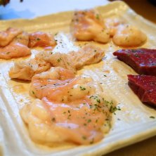 店内はアットホームで、感じの良いお店です。 お肉は、一枚から出してくれました。 良心的です。 おろしポン酢で頂きます。 美味しいお肉を少量づつ頂きたいお年頃。