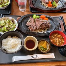 網焼ステーキランチ 肉屋直営の店で、松坂牛が安価に食べられる。 噛むと肉の表面が歯の力に抗わず、スッと切れる。なので箸のみ、ナイフ無し。 塩胡椒だけでも、ポン酢でも美味い! 味噌汁も白飯も美味い!!