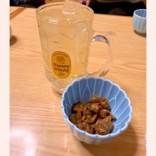 金曜日の宴 ハイボールとお通し 部下ちゃん達と新年会の下見を兼ねて忘年会 ハイボールの後は芋のお湯割り