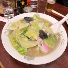 そぼろちゃんぽん 熱々🔥あったまる キャベツ、もやし、木耳、筍、豚肉、蒲鉾、イカ、むきえび、ブロッコリー、うずら、玉ねぎ タイミング良くて5分待ちで入れた