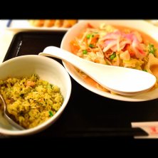 スモールちゃんぽんとあじと青高菜のチャーハンミニセット。関東のリンガーハット初めて。
