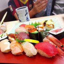 中間テストで早く帰ってきた長男とお寿司🍣🍣🍣 デート15分で終了ー🎬 友達の家へテスト勉強に行くというので、コーラ2リットルとキャラメルコーンと まがりせんを持たせてばいばい😊 んー、おなかいっぱい✨ お寿司屋さんの昼定食、赤出汁付きで500円🥰