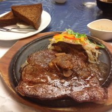 健康診断完了! 結果が来るまで心配してもしょうがないので まずは血液採られた補給をね♡ 来てみたかったせいとう✨ ハラミステーキ180gにスープにライス 食後のコーヒーまでついて閉店謝恩価格¥1200 白米に濃い味のステーキソースをちょんちょん する、至上の悦びよ〜☆o(≧▽≦)o☆
