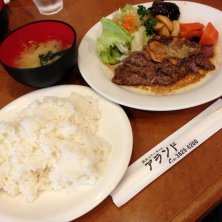 ランチステーキをチョイス。生中二杯、ご飯もお代わりング。