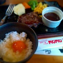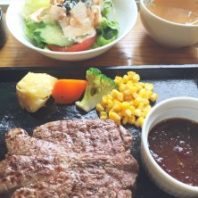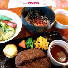 ずっと気になっていた16号沿いのmomoに初来店。和牛ハンバーグは柔らかく、味もいい感じで、美味しい! 食前にカブのマリネや食後にバナナジュースをサービスしてくれて、至れり尽くせりでした