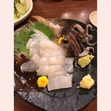 刺身5点盛り(金目鯛、アジ、真たこ、あぶらぼうず、ヒラメ)&ヤリイカ刺身