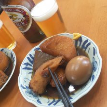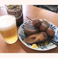 奥さんと散歩。 1998年まで巨人軍の2軍練習グランドがあった 前の店、グランド小池まで。 ここのおでんは本当に美味しい。 大根の味の染み込み方が絶妙。 もう一皿お代わりしちゃいました。