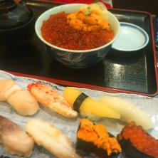ばらちらしセット パンケーキを食べたあとだったので軽めにお寿司の予定でした。写真でもそれほどでもなかったのですが実物は違いました。ごはん一合を握ったような巨大海鮮おにぎりです🍙ちょっと食べ過ぎました💦