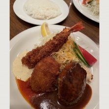 おはようございます☀ -2度です、寒い❄️ 昨日は寒い中兵庫の挨拶回りをしてきました(⌒▽⌒) その前に昼ごはんは大阪の大好き💕な洋食屋さんのAセット、ハンバーグ、コロッケ、エビフライの王道洋食屋定食をいただきました(๑>◡<๑) ハンバーグはジューシー、コロッケはサクサク、エビフライはプリップリ🍤旨かったです(๑˃̵ᴗ˂̵) ココは店員さんの対応も良くて最高です‼️ 今日は寒いので、ゆっくりさせていただきます(笑) ジョギングもゆっくりと❣️ 今日も楽しく行きましょうね〜❤️