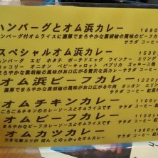 昼御飯 米沢牛の店 ●ハンバーグメニュー、その② マスターは奥のカウンターで休憩中♪ 14時過ぎるとUber Eatsの着信も鳴らない♪ マスター「オムカレーにするの?スペシャル?」 前回「スペシャルオム浜カレー」を注文したのを覚えてくれていた♪ 大判ハンバーグとナポリタンにしたかったが、メニューには見当たらない♪ 各々単品なら有るので、注文したら作ってくれそうだ♪ エビフライ、カキフライとのセットも良いが、今日は味噌焼肉にしよう♪ 220円追加で大判が良いなぁ♪