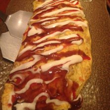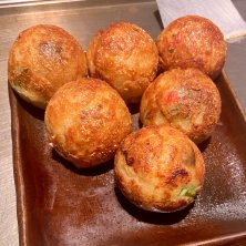 そして夜ご飯はママは女子会で4人でお好み焼き〜♪ 坊やとパパはお留守番♪ 美味しかったし楽しかった〜‼️巨大たこ焼き🐙 色々食べたのに喋ったり忙しくて写真ちっとも撮らなかった!