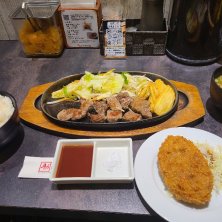 2年ぶりかな?年明け最初の社長に随行しての挨拶回り。その後はお客様に紹介頂いたお店にてお昼。駐車場が満車でお肉とのご対面はしばらくお預けでしたがそんなこと忘れてしまう美味しさ。 サイコロステーキはちょっとレア方面にふってるミディアム、ソースとの相性もばっちり。 お店オススメのジュシーメンチカツも肉汁じゅわっとしてたまらない感じです。 スタッフも丁寧な対応で素晴らしいお店。幸せなひと時でした♪ 今年も頑張ろうと思いました。
