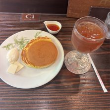 外苑前の『カフェ 香咲』にホットケーキを食べに来ました。 外はサクッと、中はフワッとしたホットケーキ、バター、ホイップクリーム、メープルシロップと絡めて美味しく頂きました。 ホットケーキ 1,056円 アイスティー 880円