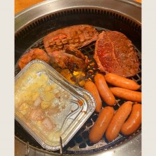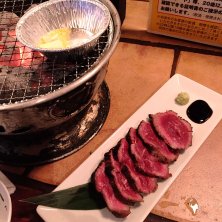 昨日の晩御飯ですが… 牛角で牛フィレ塊焼きがラインクーポンが半額たったので食べてみました〜(b'3`*)塊肉をコロコロと網の上で育てて、お店の人に切ってもらって食べます! いい感じのレア感で柔らかくて美味しかった❤️