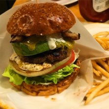 昨夜は封切りのマジンガーZを見に行って レイトショーだったので、その前に腹ごしらえ。 夜10時までやってるお店なので、ここで ハンバーガーを頂きました( ̄▽ ̄) えらい事積み上がってますよね。 食べ辛いこと、食べ辛いこと(≧∇≦) まっそう言う食べもんやし、しゃーないね。