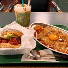 はい、カロリー大オーバーです😲 冬の函館出張は寒い。 夏に入れなかったらので、リベンジと思いきや、お店はガラガラ。 ラッキーピエロ肉スタミナカレー💴890、チャイニーズバーガー💴495、ラッキーコーヒー💴462 今週は、雪かきだけで10時間やってるから、疲れた背筋にエネルギーチャージ。