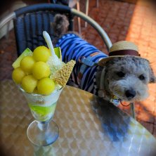 °·°·おまいり狗·°·° 旅の目的地 香川 金刀比羅宮 江戸時代「こんぴら参り」の代参をした犬達は、「こんぴら狗」と呼ばれ旅人の手から手へ飼い主の代参を務めたとか。 我が家のワンコ「こんぴら狗」の生まれ変わりか?私をリードでぐんぐん引っ張り導いてくれました。 ワンコの700段ダッシュで、足がガタガタです(^_^;) ご褒美に高知産メロンの🍈パフェ こちらのお店は、資生堂パーラーさんの香川店🍈金刀比羅宮500段目にございます🍈