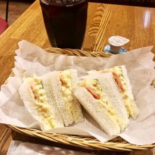 朝一の会議が終わってすぐに大塚へ収録のために移動。大塚で下車するのは約20年ぶり。 10時から食べられるお店が限られているのでこのお店に。 モーニングのサンドウィッチセットを注文。 460円。ハワイアンが流れている店内でタマゴサンドを食べる。とても好きなタマゴサンドの味だった。 喫茶店のモーニングなんて何年ぶりだろう…