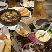 新年会 *El Plupo風サラダ *真ダコのフリット *炙りタコのガリシア風 *こだわり卵のスパニッシュオムレツ *カニのラザニア *殻つきウニのプリン *オマール海老のパエジャ どれも美味しかった〜! やっぱりウニプリンは外せない!(๑˃̵ᴗ˂̵)و