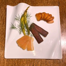 冷え冷えのガスパチョ。上から散らしてあるきゅうりの微塵切りがいい食感❤️