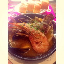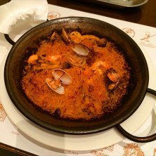 今日のランチはパスタのパエリア バルセロナ風って魚介類でした。ボリューミーたっぷりで美味しかった。 こげたパスタをこそげ取るのもなかなか楽しめました。 デザートのジェラートもさっぱりで