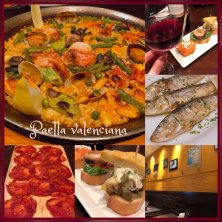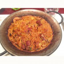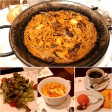パエリアランチ 税抜1500円 サラダ、タパス3種、飲み物付きです。 パエリアは海鮮、イカスミ、キノコ、4種類から選べましたが、珍しいのでパスタのパエリアにしてみました。 お米の代わりに細い麺が使われてます。貝と海老が入ってました。
