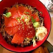 夫とランチ♡ 私はサーモン親子丼をチョイス☺︎ 近所の鉄板焼き屋さん、お昼は丼ものを出してます。 ボリュームたっぷり¥900♡!!! ご馳走様でした♡