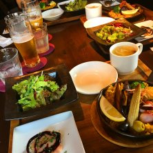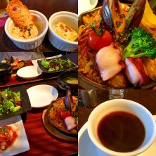 20180211 sun(public holiday) 母とランチ◡̈⋆ *パエリアランチ ・タパス2種 ・カルパッチョ ・スープ ・サラダ ・パエリア (髙島屋大阪店『アブサンソラー』)