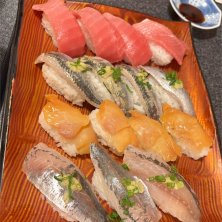 夕食(*^^*) ☆お寿司🍣 誕生日祝いとの事で子ども達が夕食をご馳走してくれました😄 でも、食べ放題って💦 もうそんなに食べられませんから😂 場所柄か、お店の中も外も外国人ばかり😅 ここはどこ❓ と思ってしまいました🤭