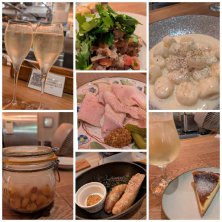 6月13日の2軒目はワイン飲めるお店へ つきだしは燻製ナッツ 牛肉とトマト 自家製ロースハム 燻製サルシッチャ ゴンゴンゾーラソースのニョッキ バスクチーズケーキ ワインは2時間の飲み放題 泡のあとは白を何杯か飲んで酔っ払いました カウンター席だったので忙しくパスタなど作られてるところが見えました かっぱ横丁っていうちょっとレトロな飲食店街の中にあるお店でした