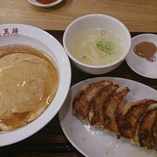 今日のお昼ご飯 餃子の王将の天津チャーハンと餃子 卵トロふわで美味しかった~(≧▽≦)
