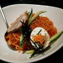 焼肉屋さんの冷麺(*´∀`) 麺に唐辛子が練り込んであります! けっこう辛かった(/≧◇≦\)でもウマウマでしたー ちなみにけっこう前に行ったものを載っけちゃいます(*´ω`*)