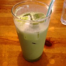 抹茶ラテ。 京都は宇治の、丸久小山園の抹茶を使った、本格的な味。 苦さはなく、ラテにした甘さと生クリームが甘い。 価格は600円と高いが、ホットのほうが若干お安め。 高いだけあって、味は最高!