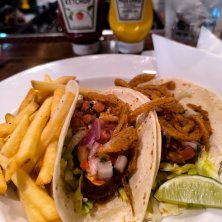 ドラゴンフリッター🐉鶏もも肉のから揚げみたいなやつ。1050円...500円はワタミカードでお支払い。水が大きいのが良き。