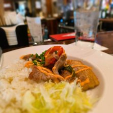 🐷豚神社定食。 ポークジンジャーライスて言われても、脂身いっぱい☺