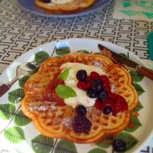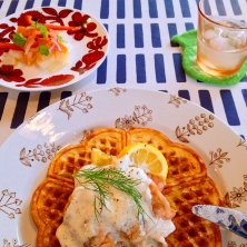 とりいそぎ、今日のランチ。 またゆっくりきまーす! 追記:幼稚園からの幼なじみ2人とまたまたマルカさんへ。 最近、北欧系に夢中という幼なじみが是非マルカに行ってみたい!ということだったので、ランチしに行きました^ ^ 私はルバーブとベリーのワッフル。クリームチーズとヨーグルトのクリームが美味しかった✨ラハカって言うんだって!