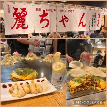 広島駅直結の地下レストラン街、お好み焼き屋さんが並んでいて、その中の一軒。 カウンターに座って、目の前でお兄さんたちがじゃんじゃん焼いていく華麗な手つきをビール片手に眺めて焼き上がりを待ちました。 鉄板からにしますか?皿にしますか?と聞かれてなんのことかとおもったらか、鉄板を選ぶと自分で切り分けて食べるらしい。皿を選択。 切ってもらい皿から箸で食べていたら、隣のおじさんは鉄板から小さいヘラで切り分けて食べてたので、ハードルは高かった、皿にしておいてよかった!