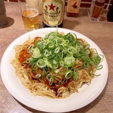 そばに玉子入りの広島焼に、餅を追加。 餅がデカくて満腹感がハンパない! 最高に美味い。行列して食べる価値ありだV(^_^)V