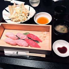 ╰(*´︶`*)╯♡ 法事の晩ごはん 一幸で、本鮪+天ぷら盛り合わせ 赤身、中とろ、大とろ🍣 うますぎる😌