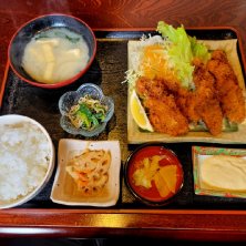 寄島で殻付き牡蠣を買ってからの 牡蠣フライ定食 たまらんねぇ熱々の牡蠣フライ🎶